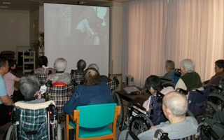 入居者様のリクエストをお聞きして色々なジャンルの映画を上映し「良かったよ」「若い頃に見たのを思い出すわ」と思い出話を懐かしそうにお話しされ、私たち職員も嬉しくなります。