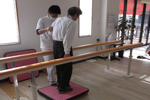 平行棒を使った歩行訓練も出来ます。 |